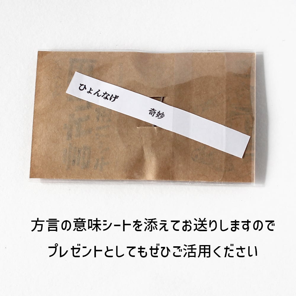 岡山方言缶バッチは、直径約32mmとコンパクトなサイズで、バッグや帽子、コートなど様々なアイテムに取り付けられます。渋カワ書体からポップなデザインへとリニューアルし、可愛らしい見た目と方言がちょっとしたトークポイントになり、周囲との会話も弾みます。30種類の方言バリエーションがあり、自身の地元愛や岡山方言への思い入れをアピールしたい方にもおすすめです。